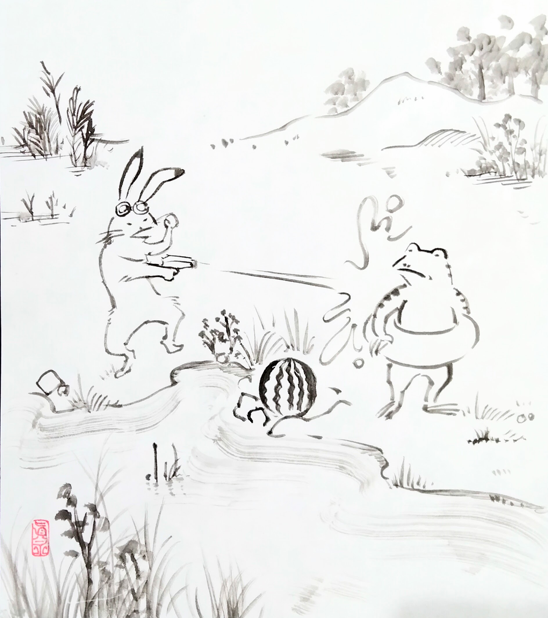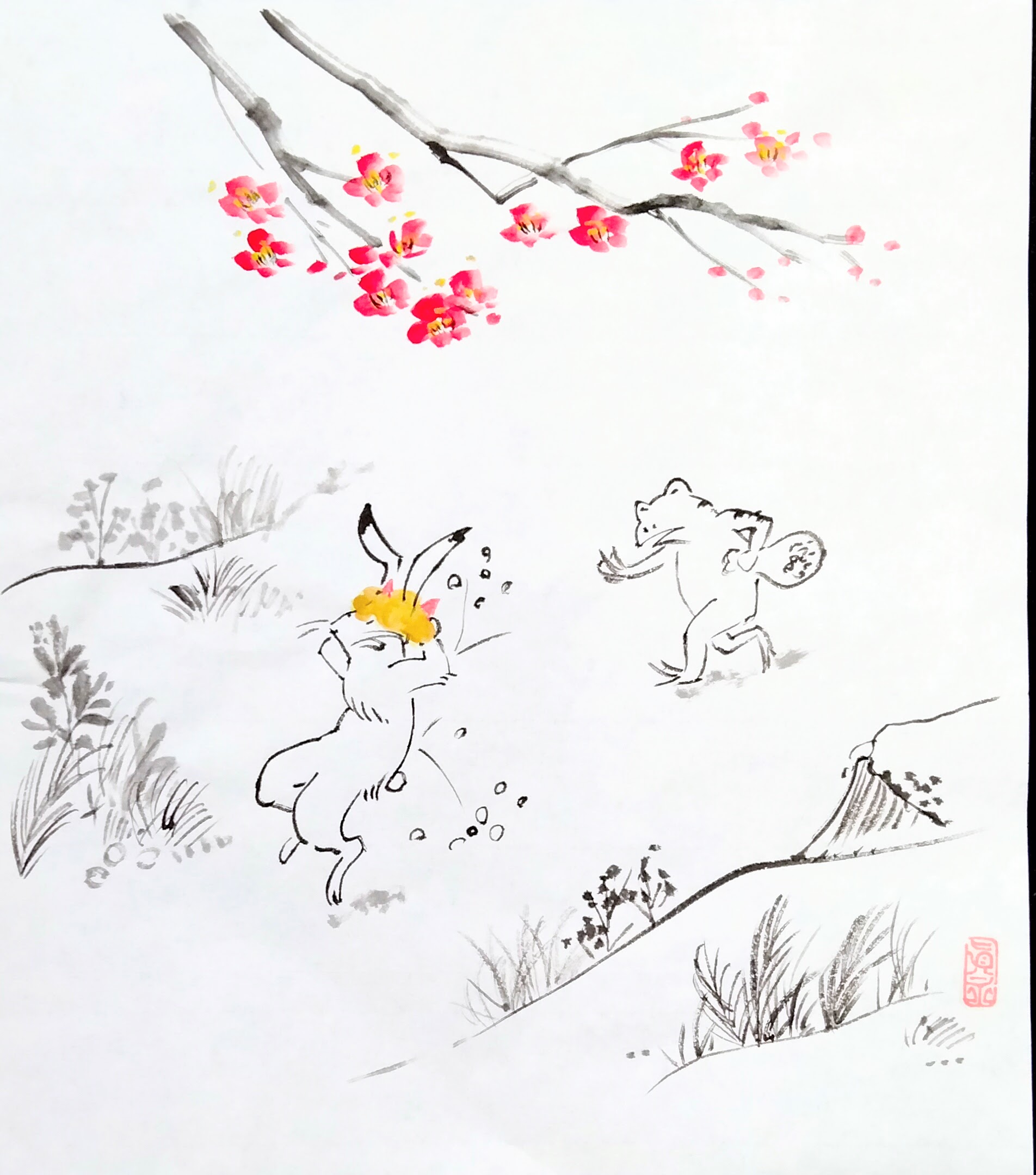 鳥獣戯画は漫画なので気分転換に楽しく描きました。