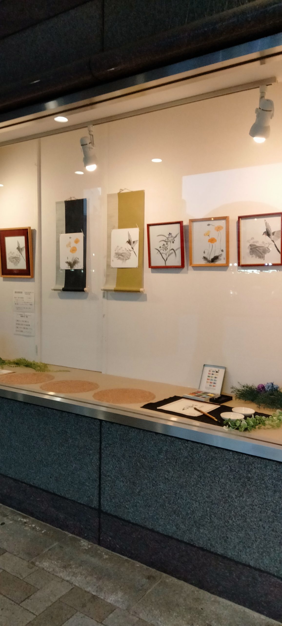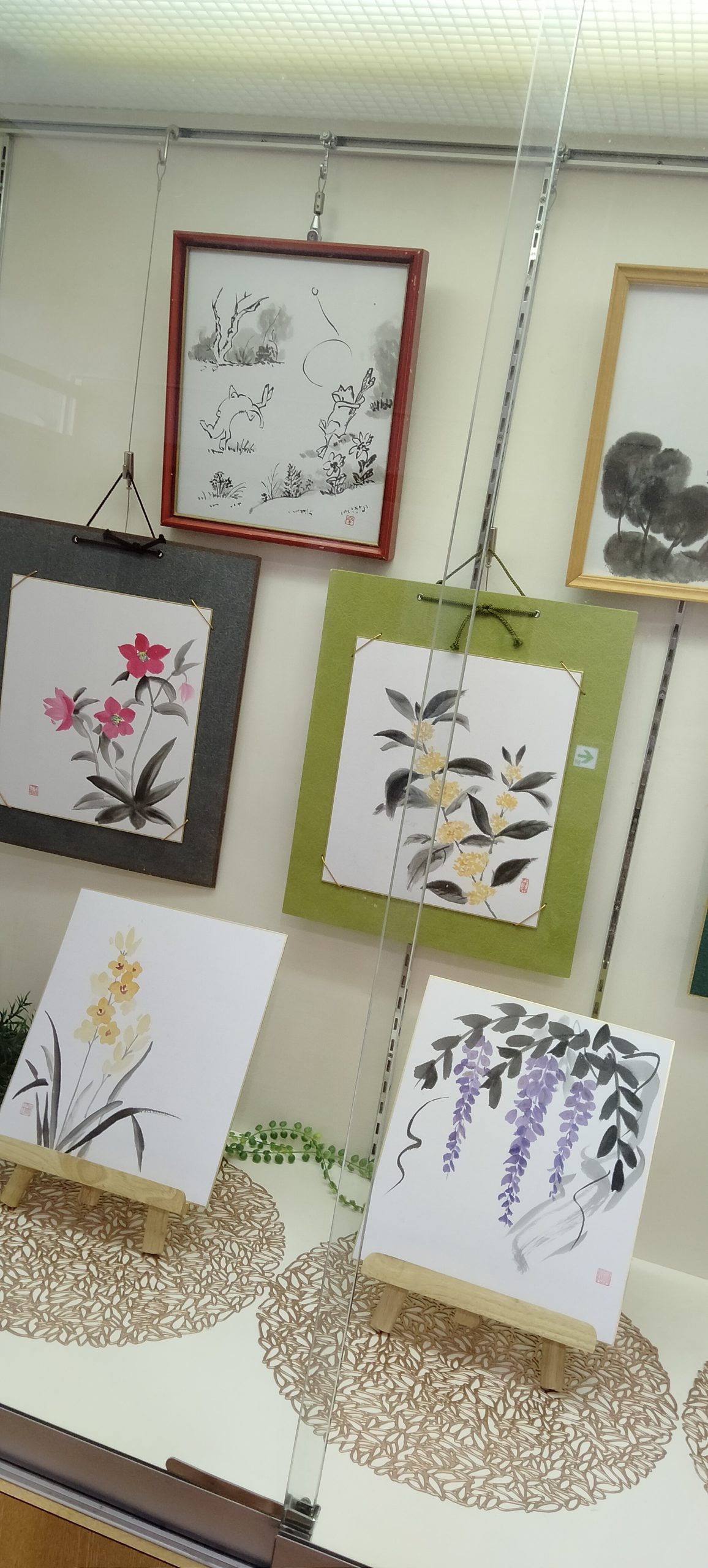花、三重塔、果物、水墨画などたくさんの作品を飾る事ができました。見応えのあるスペースになったので見て下さる方に楽しんで頂ければ幸いです。