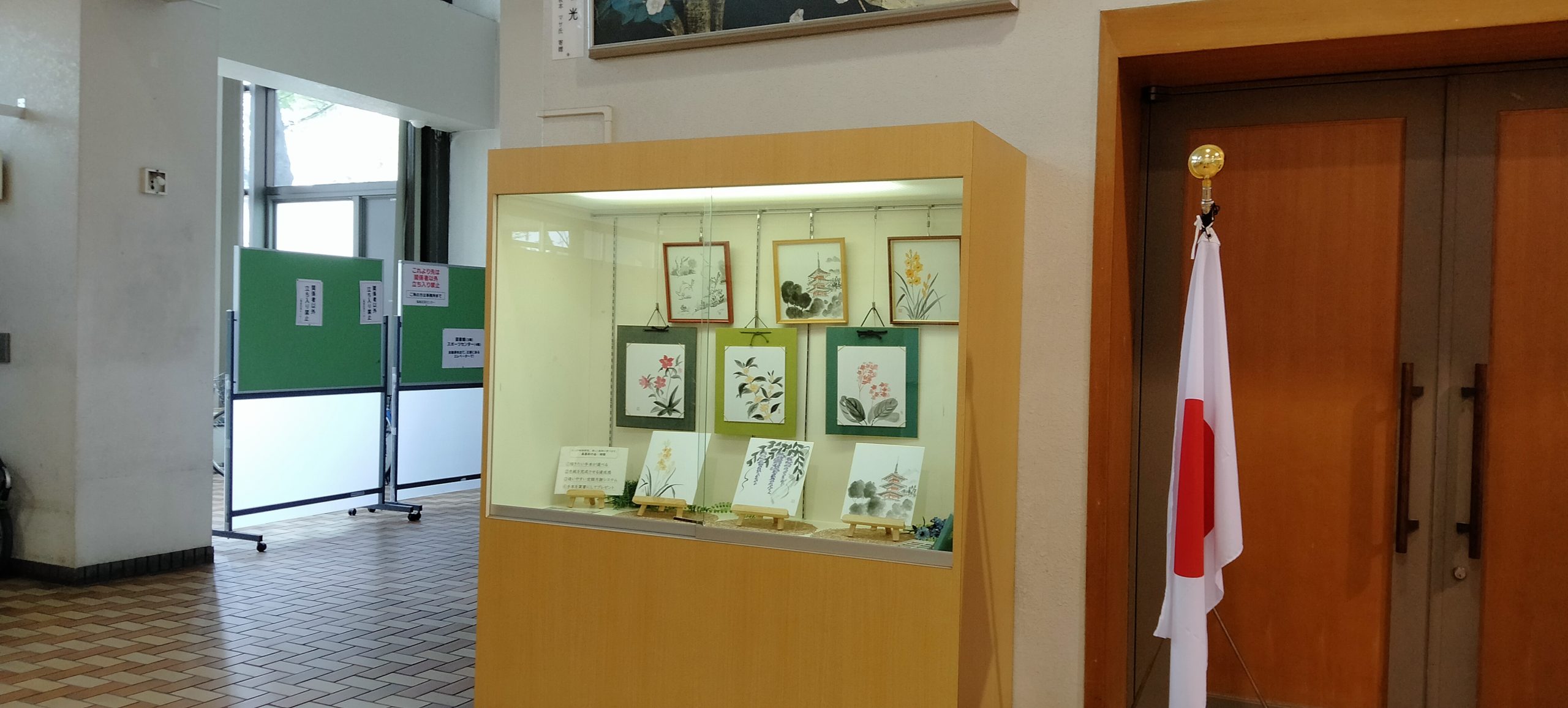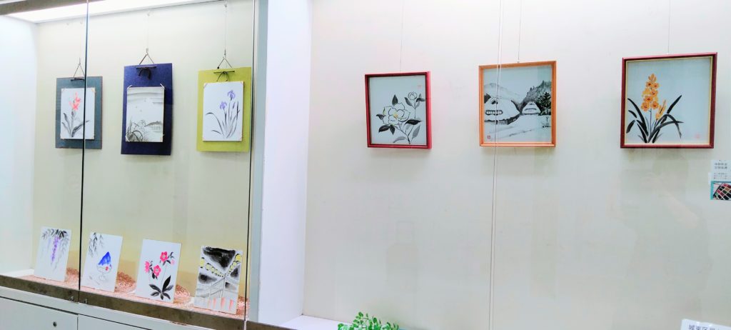 色紙作品が15枚。墨彩画で区役所を彩りました。