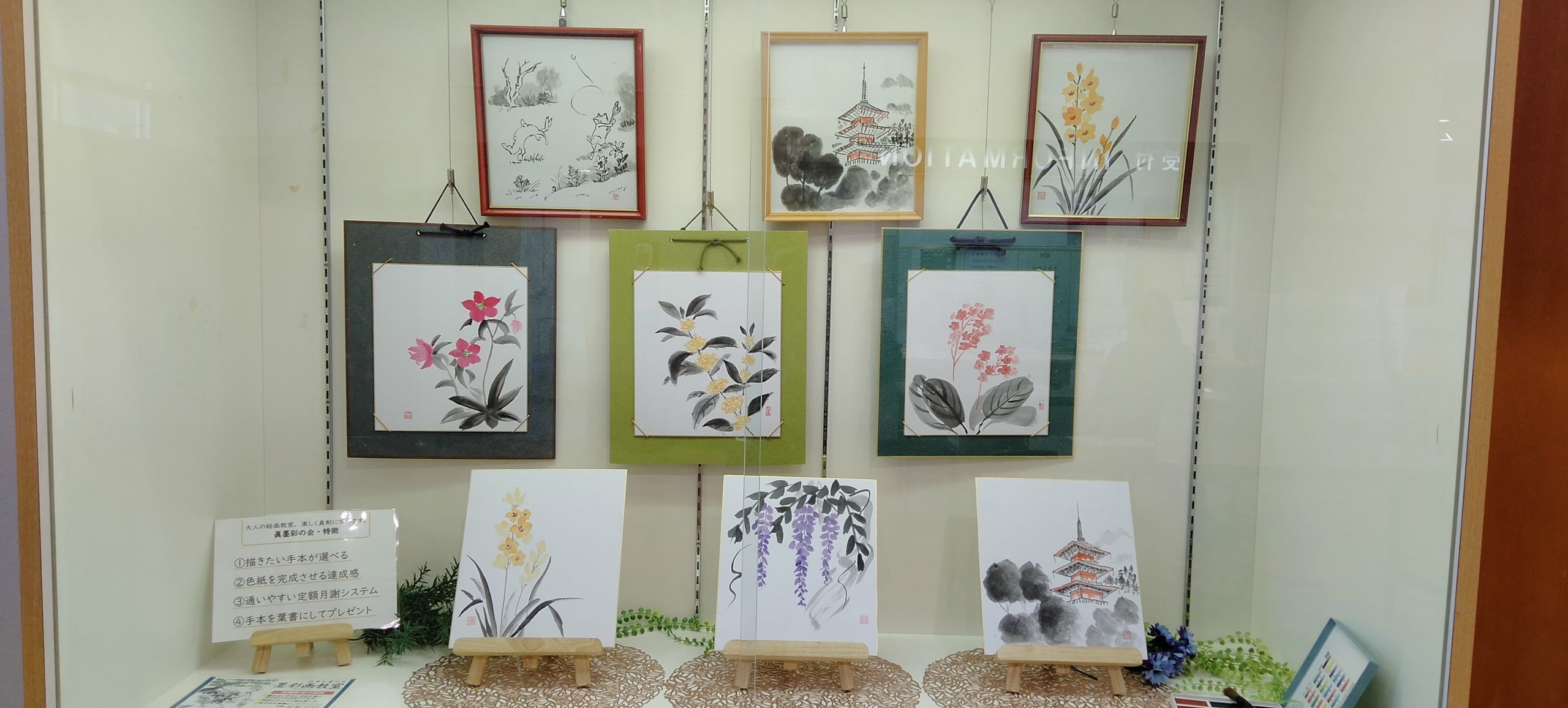 日頃の教室で完成させた色紙作品を展示しております。
