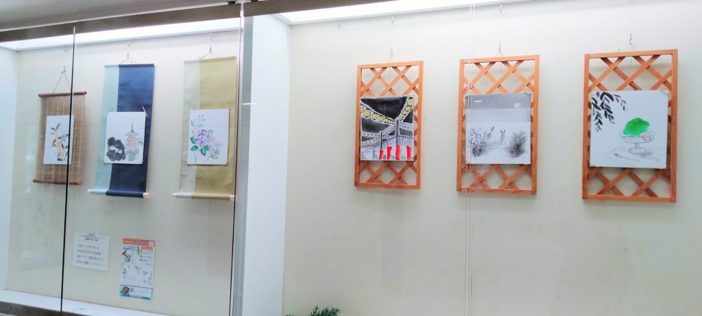 天王寺区役所1階で墨彩画を展示。